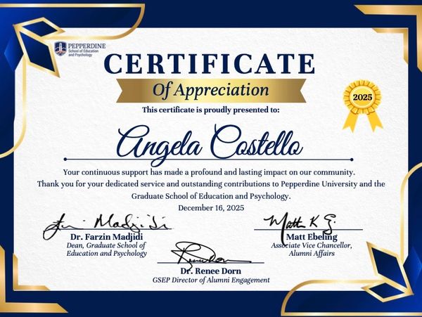 Pepperdine University – Master’s Degree in Clinical Psychology, Emphasis in Marriage and Family Therapy